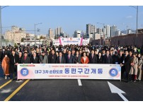 대구 남구는 20일 3차 순환도로 동편구간 개통을 기념해 주민 참여 행사인 ‘주민과 함께하는 어울림 한마당’을 개최했다고 밝혔다.이번 개통으로 남구 및 주변지역의 교통 흐름이 크게 개선되고, 출퇴근 시간 단축과 주민 정주여건 향상이 기대된다. 행사에서는 구청장 기념사와 내빈 축사, 문화공연과 함께 주민과 함께하는 개통 기념 퍼포먼스가 진행됐다. 남구청은 이번 동편구간 개통이 영대병원네거리 일대 교통정체를 분산시키고, 서편구간 조기 개통을 위한 주민 염원을 모으는 계기가 될 것으로 기대하고 있다.  조재구 남구청…