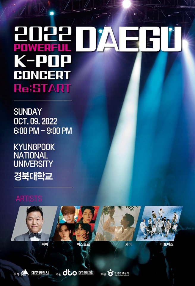 대구시와 대구관광재단은 오는 10월 9일 경북대학교 특설무대에서 개최하는 "2022 파워풀 대구 K-POP 콘서트 라인업"을 공개했다.